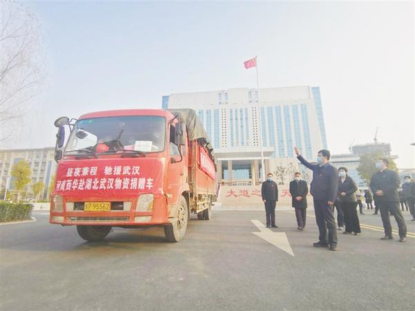 3月5日上午,西华县向河南省援鄂医疗队捐赠物资发车仪式举行后,满载2000件水冲式逍遥胡辣汤、500件小麻花、400件小烧饼的车辆,承载着西华人民的关心和祝福,向湖北武汉进发。县委书记林鸿嘉,县长田庆杰,县委副书记、政法委书记程维峥等出席仪式。