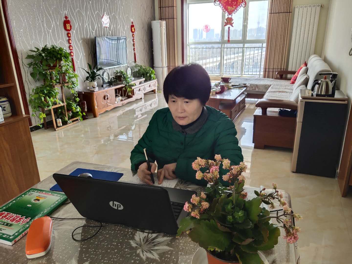老师们的教案和课件她都要逐页翻看,每一个教学重点、难点都不放过。老师们制作的网课,她都仔细观看审核,一句一句听讲解,一秒一秒看视频,一点一点记问题,一条一条列建议。面对陌生的网课,对于手机功能还用不明白的她来说无疑是一种挑战。她从头开始,查资料、学技能,经常打电话请教别人,把网课教学的问题一点一点啃下来、解决掉。老公打趣她说,这么多年,头一次这么认真学习,学的还是“高科技”。