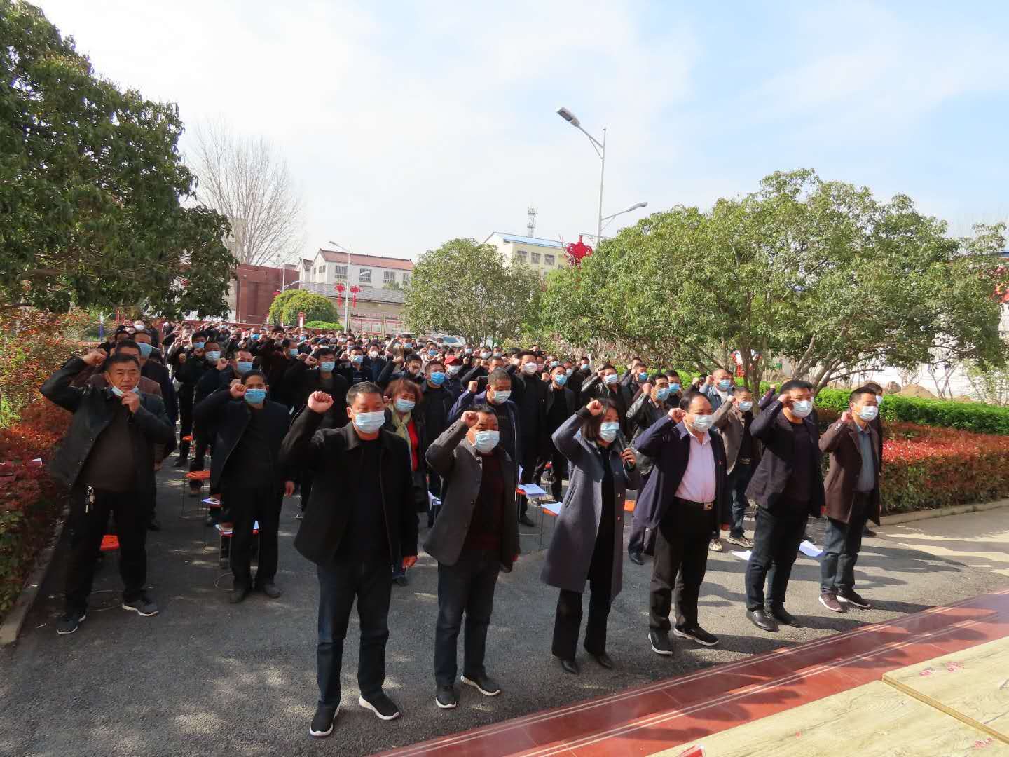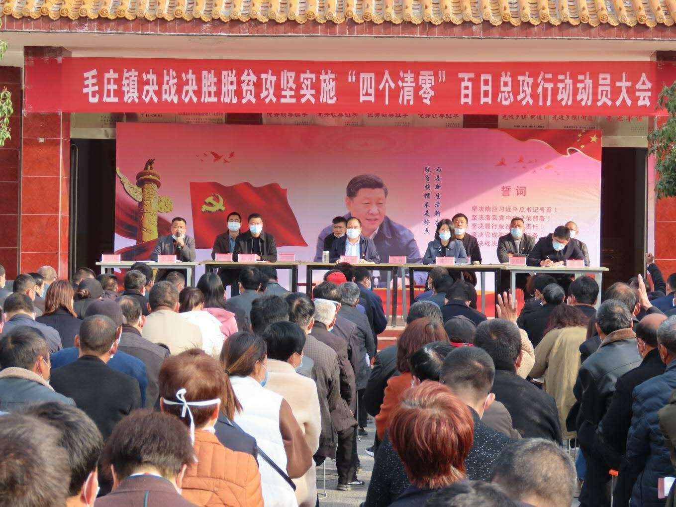 3月17日,太康县毛庄镇在政府办公楼前召开决战决胜脱贫攻坚实施“四个清零”百日总攻行动动员大会。