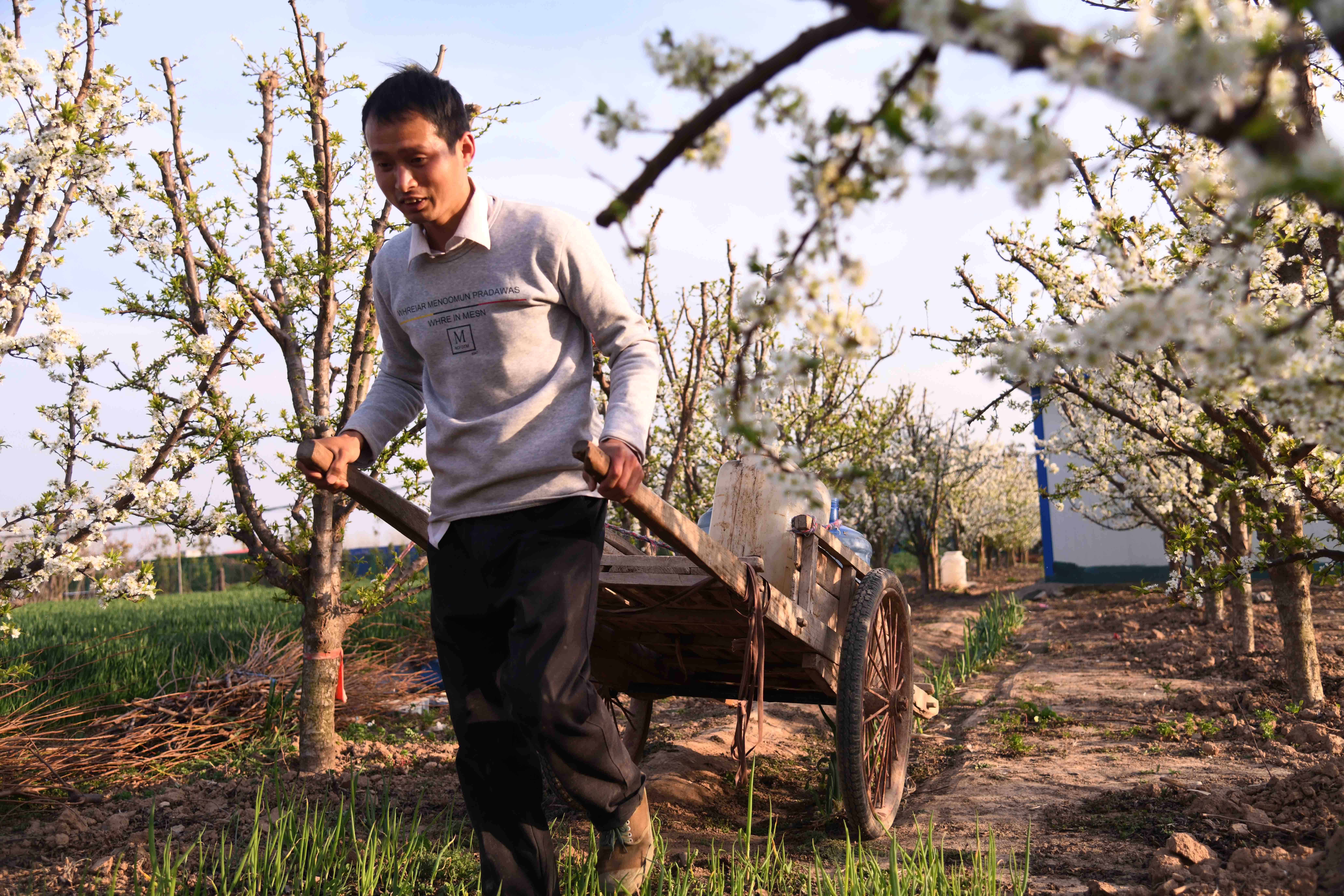 记者在一家果农的果园里看到,果园在春阳下,李子花满园浓放,满树花朵洁白如玉,芳香四溢,宛如置身人间仙境。果农正忙着为果树浇水,侍弄新栽的果苗。何庄村果园有三四百亩,种植有桃树、苹果树、梨树、李子树、柿树等,是附近有名的果树种植村,成为村里的重要副业,每年夏秋季节,这里瓜果飘香,吸引很多城里人和附近村民前来购买。