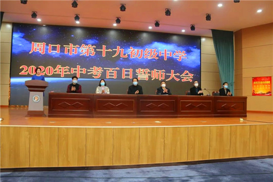 “九年磨剑剑走偏锋锋芒毕露,一朝出鞘笑看金榜榜上有名,通过这次大会,全体师生统一了思想、明确了目标、鼓舞了士气,吹响了百日冲锋的号角,我们相信2020中考,十九中必将再次谱写新的辉煌篇章。”周口十九中校长王伟如是说。