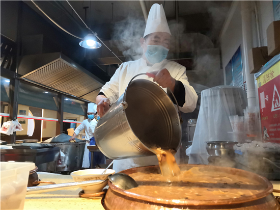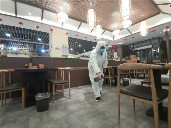 当日凌晨3时30分,记者赶到这家早餐店,这里已是灯火通明,厨师和员工经过测温消毒后开始了一天繁忙的工作。“虽然现在允许堂食了,但我们的防控工作依然没有放松,认真做好每一位食客的测温和登记工作。”该店经理王艳告诉记者,他们是昨天接到县食品药品监督部门允许堂食的通知,随后,他们对店面进行了全面消杀工作,并将餐桌撤掉一半,保持一米以上间隔距离。