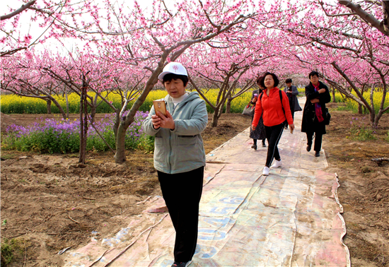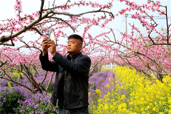 “老铁们,今年桃花节,因受疫情影响,是网上举办的,喜欢看黄桥桃花的网友,不要遗憾,我是您的忠实老铁,每天会准时给您分享桃花节的美景图片及视频,让您足不出户观赏到万亩桃园桃花盛开的美景。”3月22日,在西华县颍河湾生态采摘园,网红“西华桃子哥”和合盛正在拍摄桃园美景,一边通过抖音、快手、微信群向网友拍摄上传桃花盛开的视频、图片等美景,一边乐此不疲地口中念念有词道。