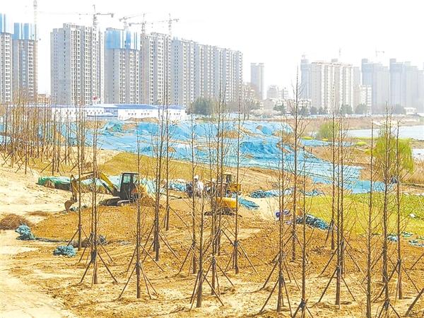 3月20日,沙颍河周口大道至八一大道北岸生态改造工程正在紧张施工。该工程全长约4.6公里,整体设计围绕沙颍河主题印象展开,滨水景观将展示丰富多彩的周口文化底蕴。目前,周口大道至大庆路段的景观绿化和市政道路正在加快施工。记者 孙安平 摄