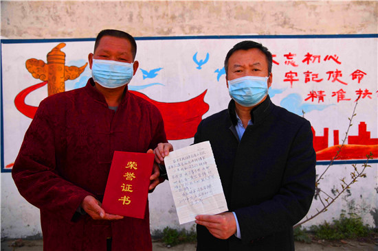 为了让武汉返乡人员不出门,老老实实地隔离在家里,他们分班看护。全村有26户矜寡老人和10户武汉返乡人员,是疫情中最需要帮助的对象,谁家缺菜少面,谁家液化气没了,他们天天往那儿跑,给他们提供帮助,王志成说,小分队冒死抗疫,得到乡亲们的认可,连怨气很大的武汉返乡村民也感激不已。