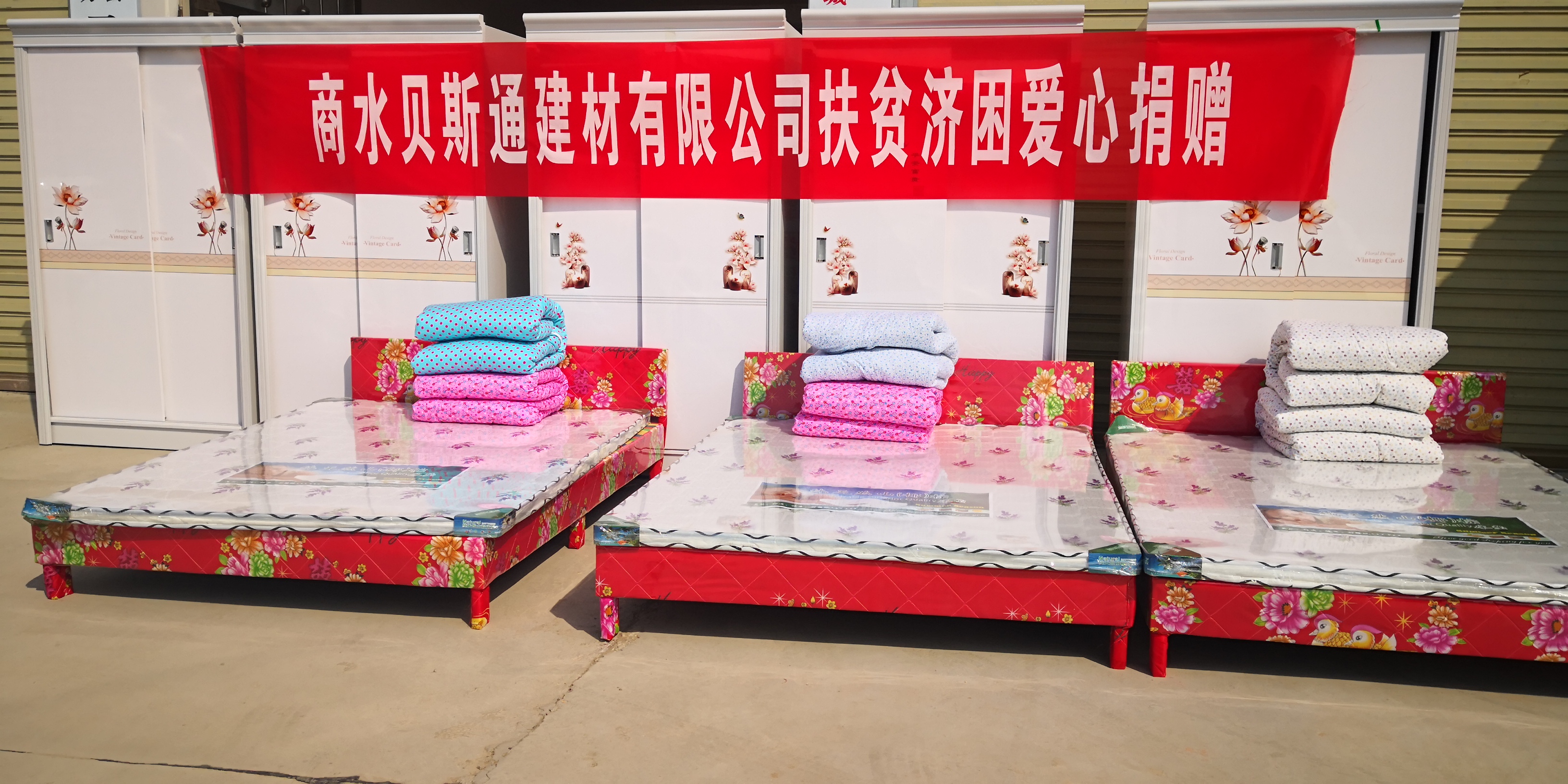 近年来,商水贝斯通建材有限公司在诚信经营的同时,积极履行企业社会责任,踊跃参加“百企帮百村”、慈善捐赠等活动。2017年以来,商水贝斯通建材有限公司每年重大节日都向马口村贫困户捐赠米、面、油、月饼等生活用品;为马口村村室捐赠了打印机、远程电视、大理石板材等办公、生活用品,累计开展捐赠活动10余次,累计捐款捐物20000余元。这次他们又为新城办马口村贫困户现场捐赠价值4000元的衣柜、床、床垫等家居用品。