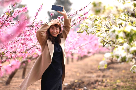 近日,泛区农场万亩果园内梨花、桃花竞相盛放,粉色桃花似锦,白色梨花如玉砌,置身其中,宛如人间仙境,吸引了不少游客前来观赏。