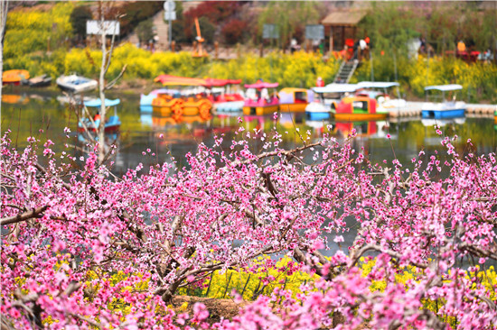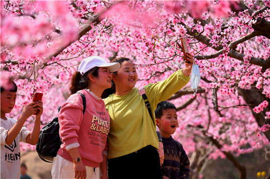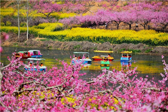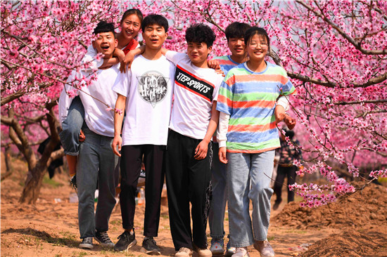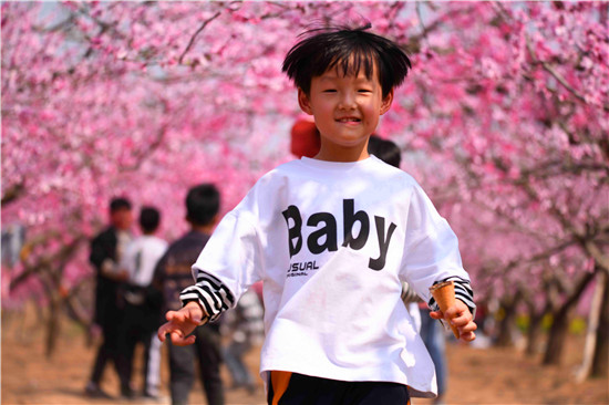 而在万亩桃花深处,赏花的人们也是醉不知归。大人孩子们神采飞扬,追逐赏花,探幽觅芳,玩得很嗨!还有一个时尚的人们,在桃花深处玩抖音、玩直播、拍视频,与天下网友共赏花海之美。