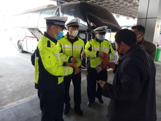 检查中,民警向客运车辆驾驶员、乘客发放《客运企业疫情防护知识》《珍爱生命安全出行》《致驾驶员的一封信》等交通安全宣传资料。