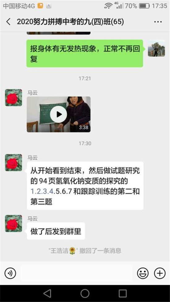 “停课不停学”开展一周后,平店一中八七班朱可新的家长给校长支永辉打电话说:“原来不知道孩子在学校是咋学的、老师咋教的,陪着孩子网上学习后,我才知道老师天天都起早贪黑,比我们打工的都辛苦……”