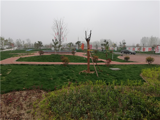 3月26日,春雨过后,商水县新城办事处算张行政村占地50多亩的村头花园空气清新,一片苍翠。