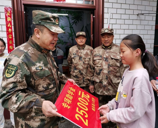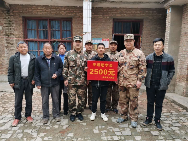 3月26日上午,河南省鹿邑县县委常委、县人武部政委杜宝森,县人武部部长范亚光一起到张店镇白杨寺行政村,为贫苦户家庭的学生开展“扶贫助学兴教”活动, 为8名学生每人发放了2500元专项助学金。