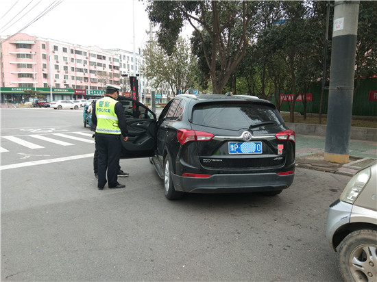 3月27日8时30分许,记者在周口中心城区交通大道与大庆路交叉口附近看到,值勤交警将两辆车牌尾号为5和0的车辆拦下,对其进行处理。当日(星期五),按照相关规定,我市中心城区对车牌尾号为5和0的车辆限行。记者张洪涛摄