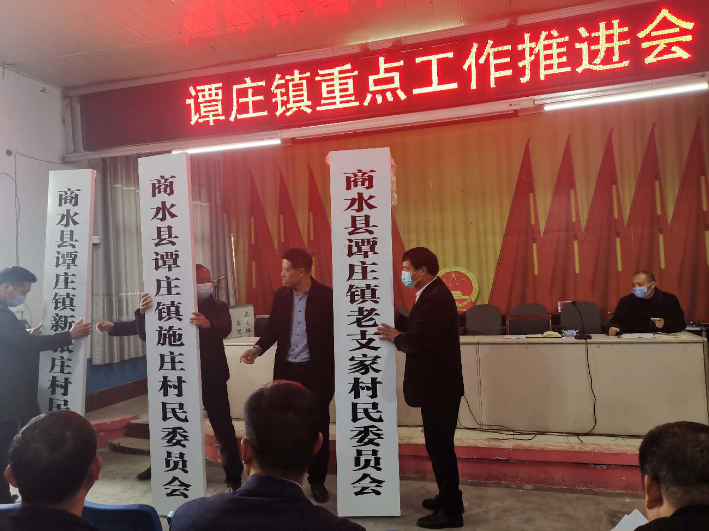 会上宣读了商水县人民政府关于商水县国营农场行政区划调整的通知。谭庄镇负责人对老支家、新张庄和施庄的并入表示热烈欢迎,表示全镇将周密组织实施、高度重视,妥善处理行政区划调整过程中出现的各类问题,维护好社会稳定,促进谭庄镇经济社会更好发展。同时希望这三个村利用区划调整这一契机,与全镇人民一起抢抓机遇,大干当前、共同努力、齐头并进,为建设和谐、美丽、富有的谭庄镇而努力奋斗。