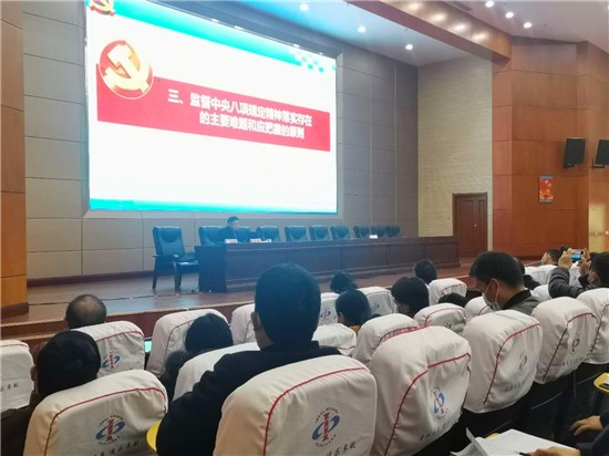 “建立落实中央八项规定精神月检查季分析制度,结合关键时间节点、聚焦具体问题,结合干部作风大整顿工作和群众关注的焦点开展抽查暗访。同时加大工作情况通报力度,查处和曝光危害群众切实利益的问题……”在郸城一高学术报告厅,郸城县纪委监委派驻教体局纪检组组长钱程铿锵有力地说。
