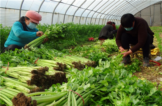 昨日,沈丘县周营镇豫东惠农家庭农场大棚蔬菜种植基地,“农业工人”们正在忙着采收订单生态芹菜。近期来,沈丘县在抓好疫情防控的同时,出台系列扶持政策,促进现代设施农业有序恢复生产,带动当地贫困村民就近务工增收致富。