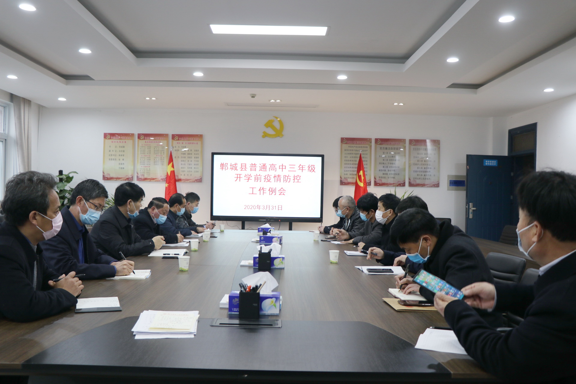 3月31日下午,郸城县高三年级开学前疫情防控工作例会在一高召开,县教体局局长刘现营,副局长张祥增、陶永昌和各普通高中校长参加会议,县疾控中心主任张吉志应邀到会作开学前疫情防控业务指导。