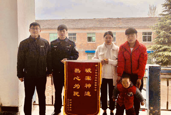 3月31日,郸城县丁村乡单某和家人一起,将一面印有“破案神速、热心为民”的锦旗送到丁村派出所,对办案民警表示感谢。