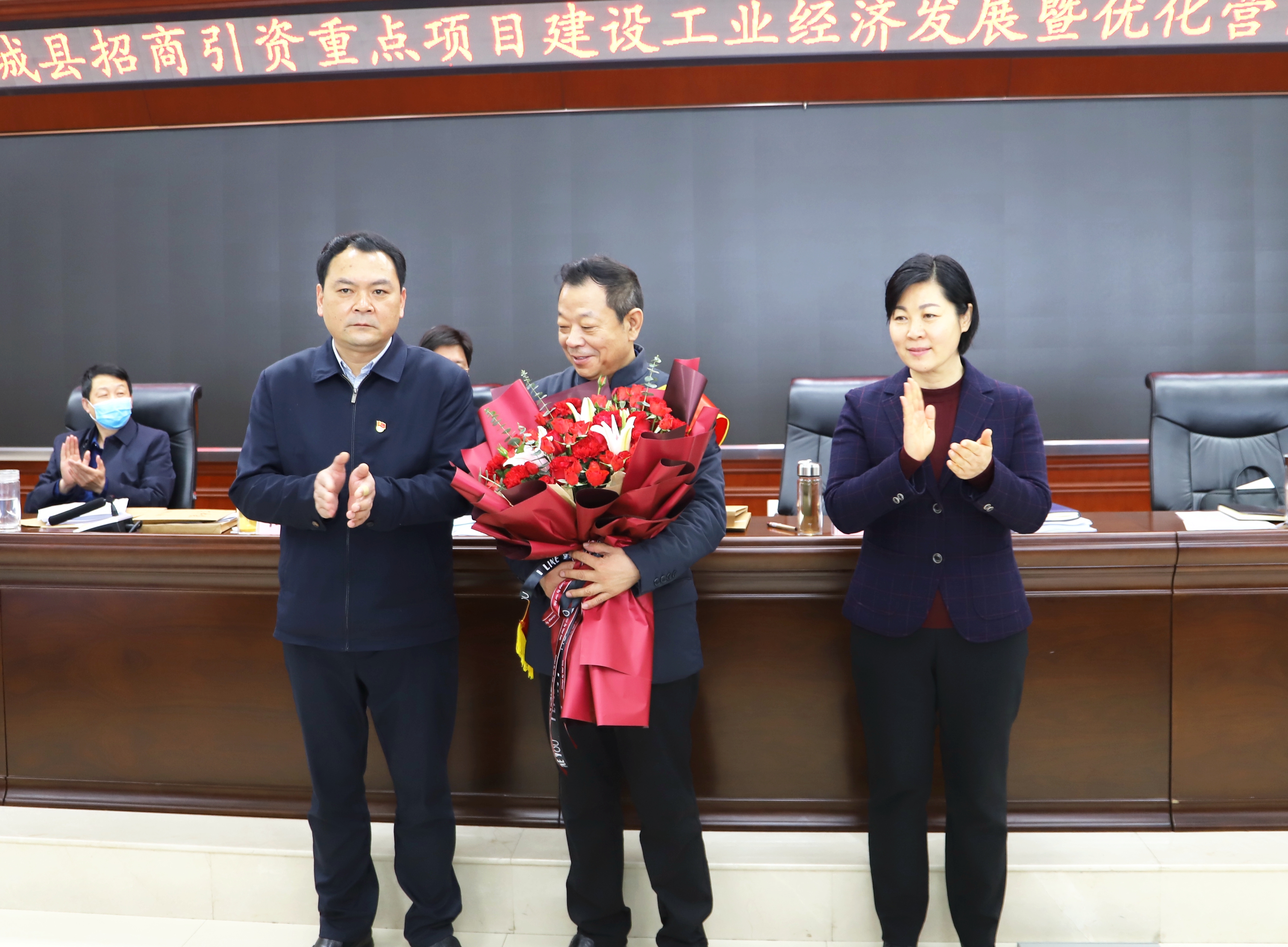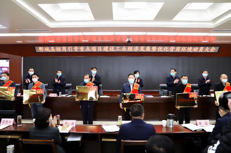 鲜花、绶带、重金……4月1日,郸城县交出2019年以来招商引资重点项目建设工业经济发展暨优化营商环境等优秀成绩单,一举捧出近千万元资金重奖经济功臣。其中,祝贺金丹科技上市奖金600万元。再次诠释该县坚持把优化发展环境作为一项“永不竣工的工程”,亮出真情牌、服务牌、诚信牌,把发展环境作为最具吸引力的“活广告”,为高质量发展提供坚实保障,在招商引资突破年里蓄力突破。