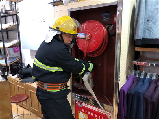 微型消防站实地拉动也是此次比武的重头戏,在重点单位中抽取商场市场等人员密集场所作为实地拉动对象,分两组对单位进行逐个测试考评。在各单位模拟一处起火点,“考官”按下手报,控制室值班人员利用对讲机确认火情,然后原地着装,两人拿灭火器先行处置,两人在离火点最近处利用室内消火栓出水。“考生”严格按照微型消防站火情处置程序进行操作,动作一气呵成。实地拉动测试也由以前集中考核的方式改为模拟实战拉动,根据现场处置情况进行评分,比武更具实战效果。