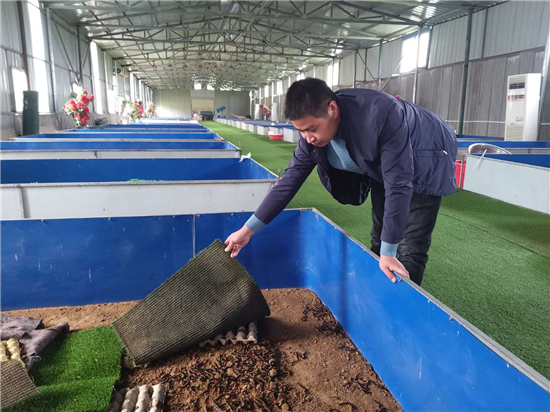 “返乡后的赵振伟,先是承包了村里一处废弃多年的砖窑场地,建起仿生态蜈蚣养殖基地,后又成立了养殖专业合作社,从事立体规模养殖和干品蜈蚣订单加工。前年,他还借助电商平台干起了电商,建立了自己的网站,采取网上订单销售、物流发货配送等形式打通销售渠道。”聊起赵振伟二次创业的事,村支部书记赵书昌娓娓道来。