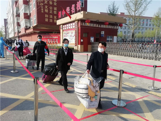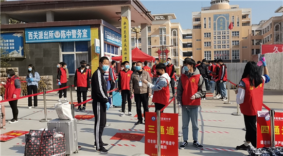 测量体温、分批消毒进校、错时就餐、小班额上课……4月7日,暖阳高照,淮阳中学、陈州高中等学校在实行系列防控措施的情况下,各高中有序迎来高三开学复课第一天。