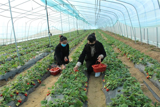 2020年3月5日,西华县小红帽草莓采摘园的工作人员正在采摘奶油草莓。