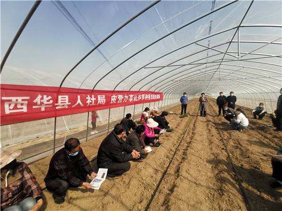 4月7日上午,西华县皮营办事处在刘庙村芦笋种植基地举办芦笋种植现场培训会,邀请山东潍坊芦笋研究院院长李保华手把手教群众种植芦笋。