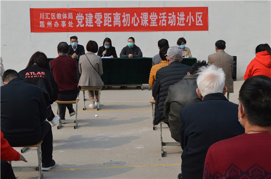 4月9日下午,邦杰社区周口六中家属院操场上热闹非凡,阵阵欢笑声在暖风中飘扬,原来是川汇区教体局和陈州办事处在联合举办党建零距离初心课堂进小区活动。