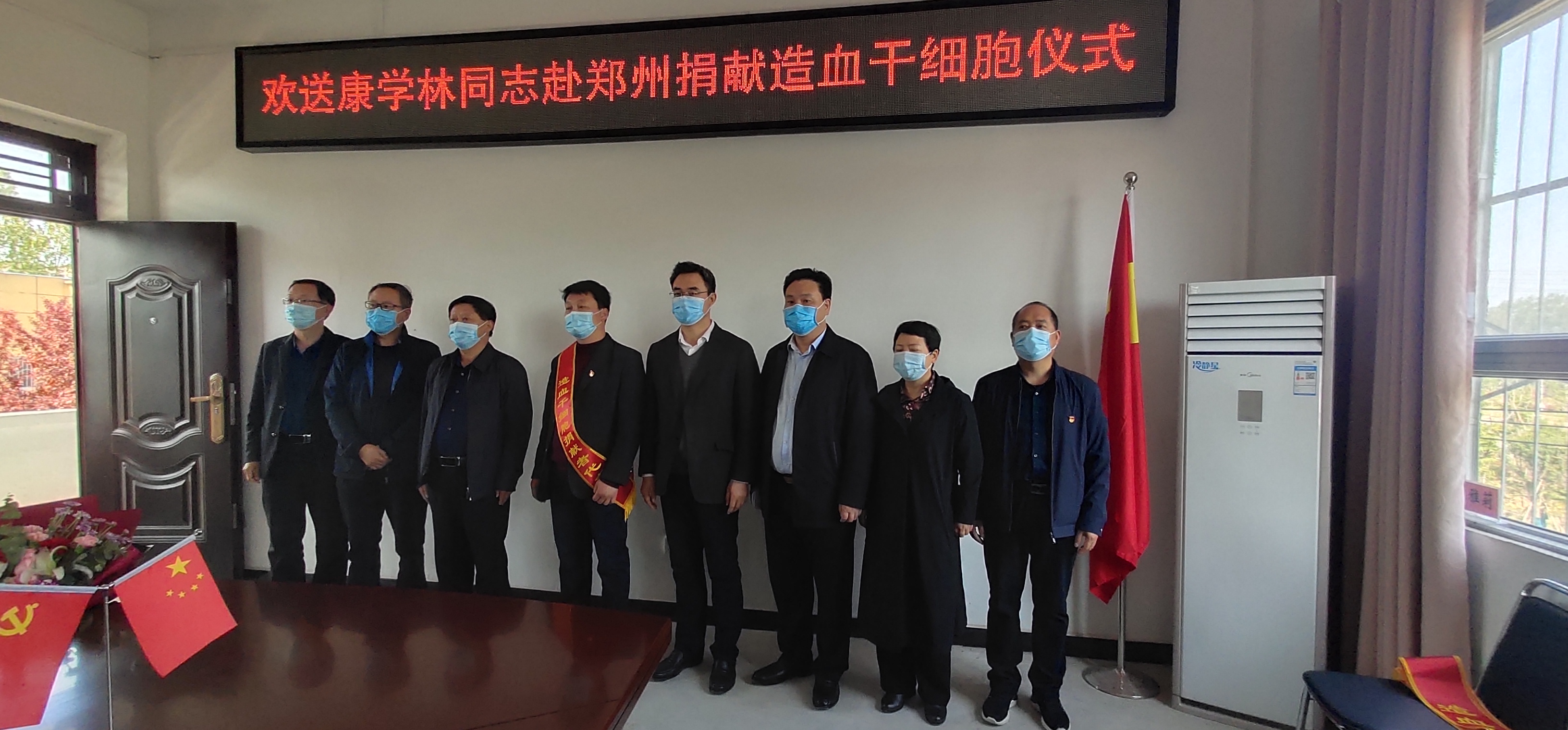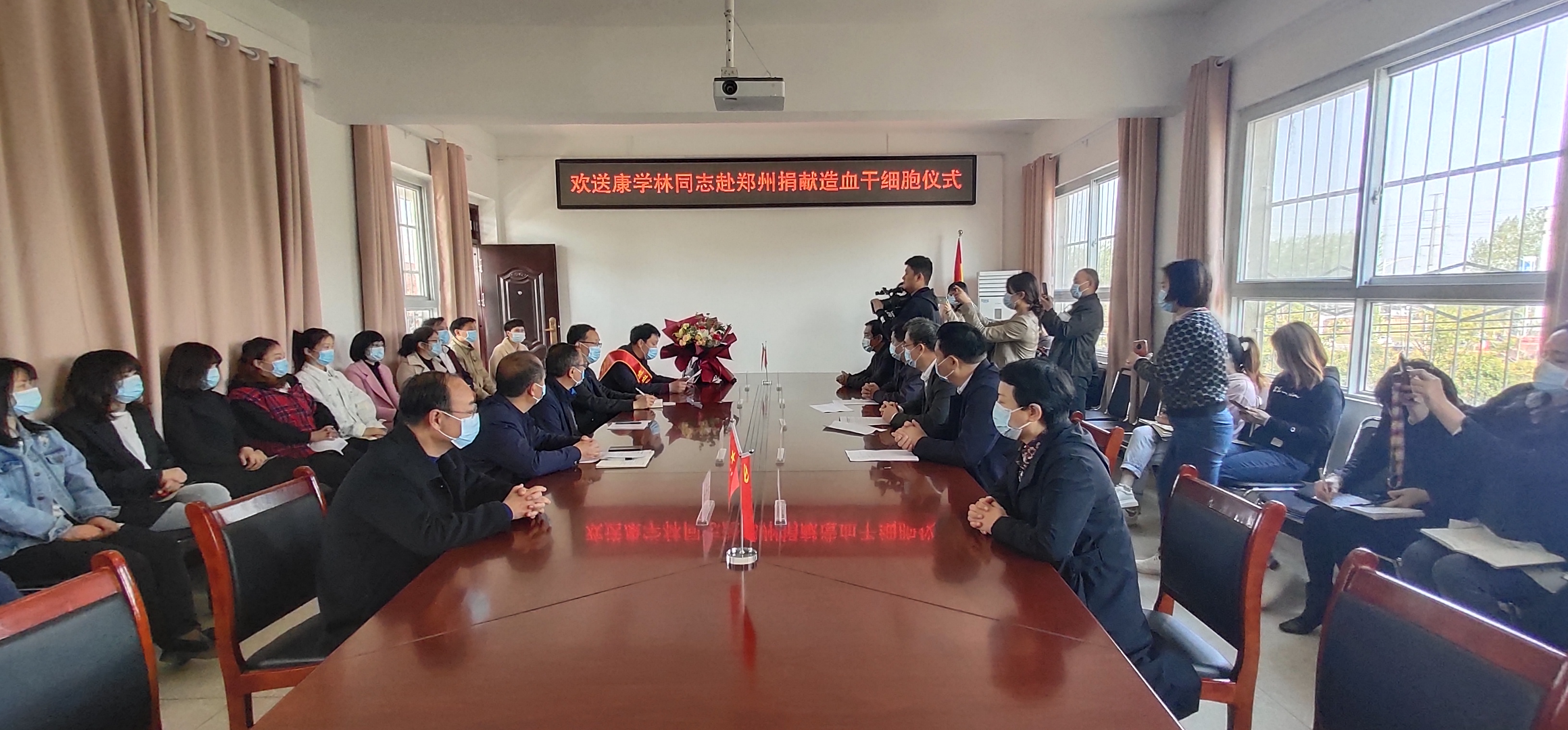 4月13日上午,在川汇区医保局三楼会议室,我市为康学林赴郑州捐献造血干细胞举行欢送仪式。副市长、市红十字会会长秦胜军出席。市政府副秘书长唐峰,市红十字会常务副会长毛立营,市红十字会秘书长高春,川汇区副区长、区红十字会会长晋瑞英,川汇区卫健委主任任艳阳,川汇区医疗保障局党组书记王平立,川汇区医疗保障局局长栾春光,川汇区卫健委副主任杨平云等参加。