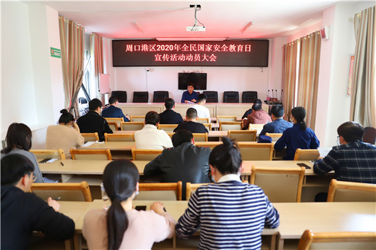 4月9日,周口港区组织召开2020年“全民国家安全教育日”宣传活动动员大会,对宣传重点及各部门、各行业宣传任务进行分工部署。港区党委委员张东立做动员讲话。