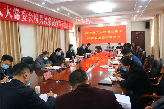 4月16日,西华县人大常委会机关召开全体人员会议,开展以案促改警示教育,安排部署脱贫攻坚等工作。县人大常委会党组书记、主任周晓燕,副主任赵晓春,党组成员、副主任王心坎、庞有敬出席。党组副书记、副主任张国玉主持。