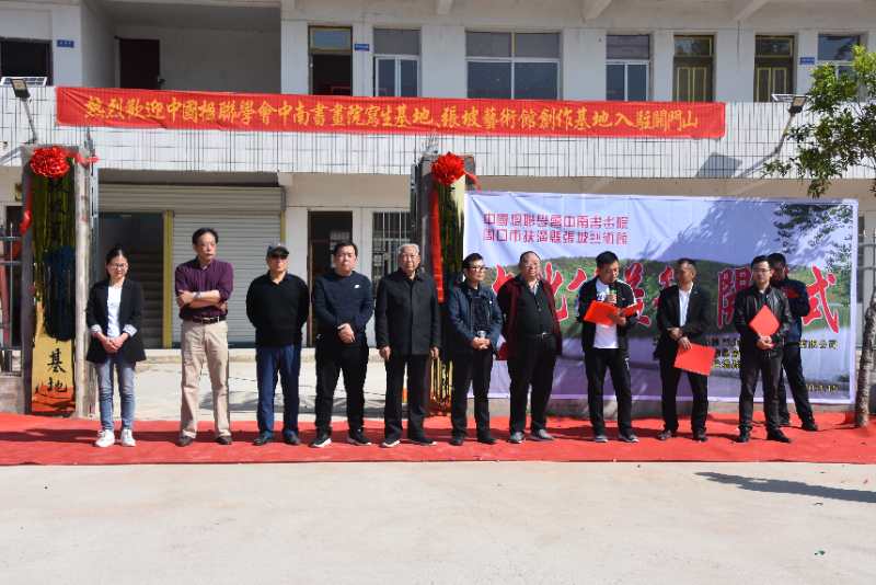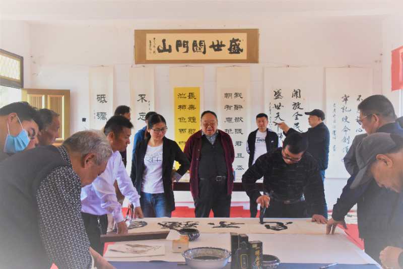 路晋成、张俊鹏、高丽、张红先现场为中南书画院关门山写生基地、张坡艺术馆关门山创作基地揭牌。书画家们还现场挥毫泼墨,为村文化中心即兴创作了书画作品,并给当地捐赠了三十多幅书画名家佳作。