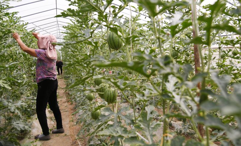 西华迟营乡百农园产业扶贫基地内的西瓜
