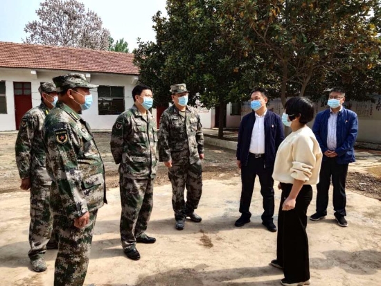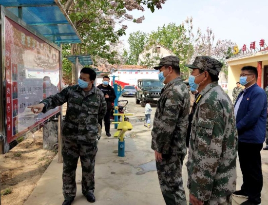 4月21日上午,老子故里春风和煦,白杨寺村绿意盎然。在脱贫攻坚决战决胜的关键时期,周口军分区副司令员薛振喜到鹿邑县张店镇白杨寺村检查指导县人武部定点帮扶的脱贫工作。县委常委、县人武部政委杜宝森,县委常委、县政府党组成员张国庆,县委党校党委书记、常务副校长郑峰陪同检查。