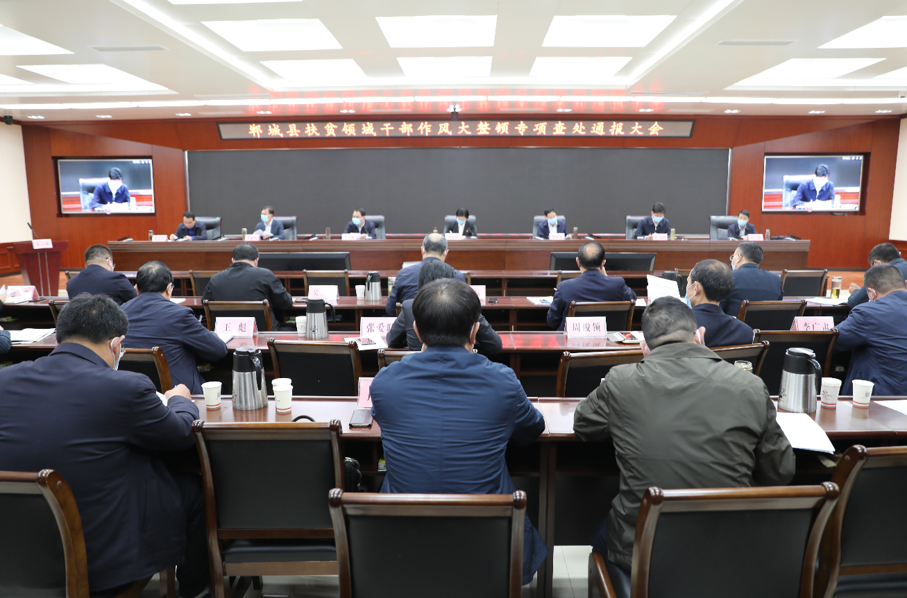 崔卫国宣读了《关于对县农发行等单位、樊建辉等同志脱贫攻坚工作不力、作风不实等问题的督查通报》。胡友涛宣读了《中共郸城县纪委关于扶贫领域腐败和作风问题典型案例通报》。南丰镇、宁平镇、县农发行、水利局驻白马镇仵店行政村第一书记、吴台镇三王岭行政村支部书记分别作检讨发言。与会全体同志还共同观看了《锤炼过硬作风 践行初心使命 以优异的成绩夺取脱贫攻坚收官之战全面胜利》干部作风督查纪实片。