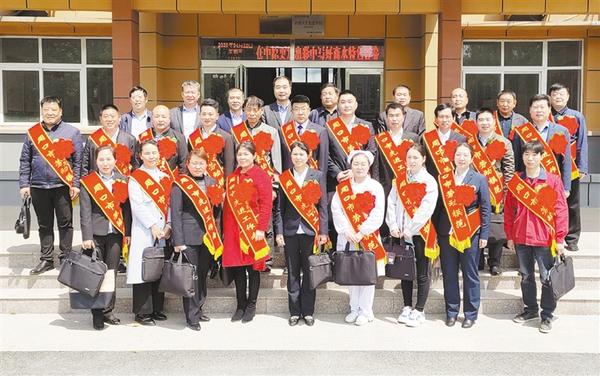 4月22日,2020年庆祝“五一”国际劳动节暨表彰周口市劳动模范和先进工作者大会以视频会议形式召开,商水县共有24名同志荣获2020年周口市劳动模范和先进工作者荣誉称号。图为县领导孔阳、张峰、李德来、孙培忠、陈新民、卢红兵等与劳动模范和先进工作者合影。