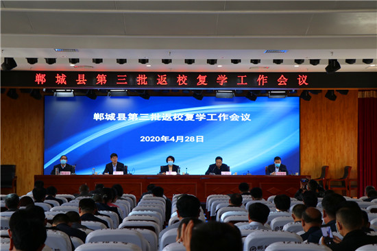4月28日,郸城县组织召开第三批返校复学工作会议,安排部署第三批返校复学工作。副县长肖炜、县政协副主席崔家龙和县教体局局长刘现营、卫健委主任付登霄、疾控中心主任张吉志等出席会议。