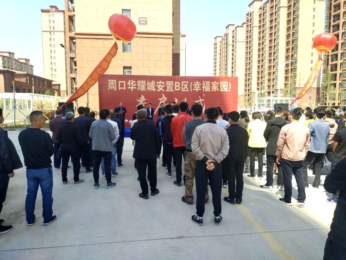 4月28日上午,周口人民公园及周边棚户区综合改造项目嘉和园B区、华耀城安置B区(幸福家园)两个安置房项目分别举行交房仪式。副区长徐钊出席。