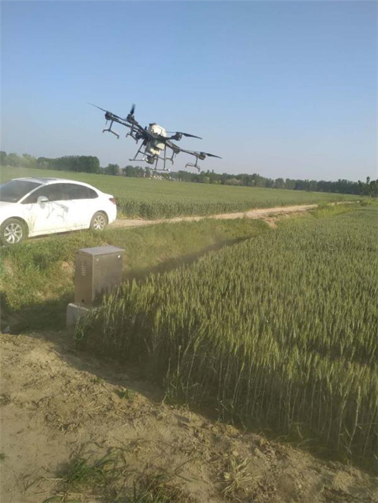 现在正值小麦孕穗抽穗期的关健时间节点,也是各种病虫害的高发期,做好这一时期的田间管理工作对确保小麦的丰收至关重要。将杀虫剂、杀菌剂、微肥、抗旱剂等混合加水喷雾能同时实现防治小麦病虫害,预防干热风,防治倒伏和增加千粒重的效果。利用无人机作业,提高了工作效率,提升了用药效果,降低了劳动成本。
