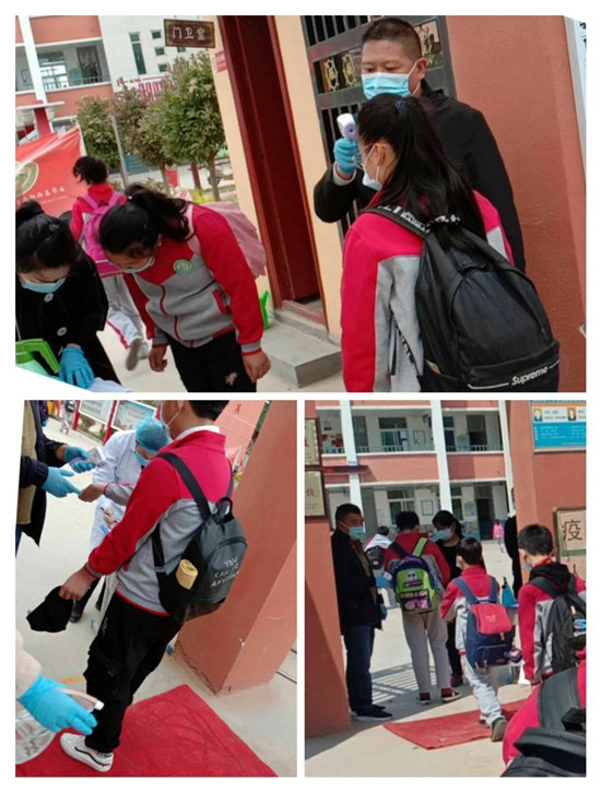 复学第一天,近200名学生严格按照学校要求,带着《学生健康登记卡》和《学生健康返校承诺书》,戴着口罩、间隔一米,在规定时间、指定地点陆续进行消毒、测量体温后,有序错峰返校。