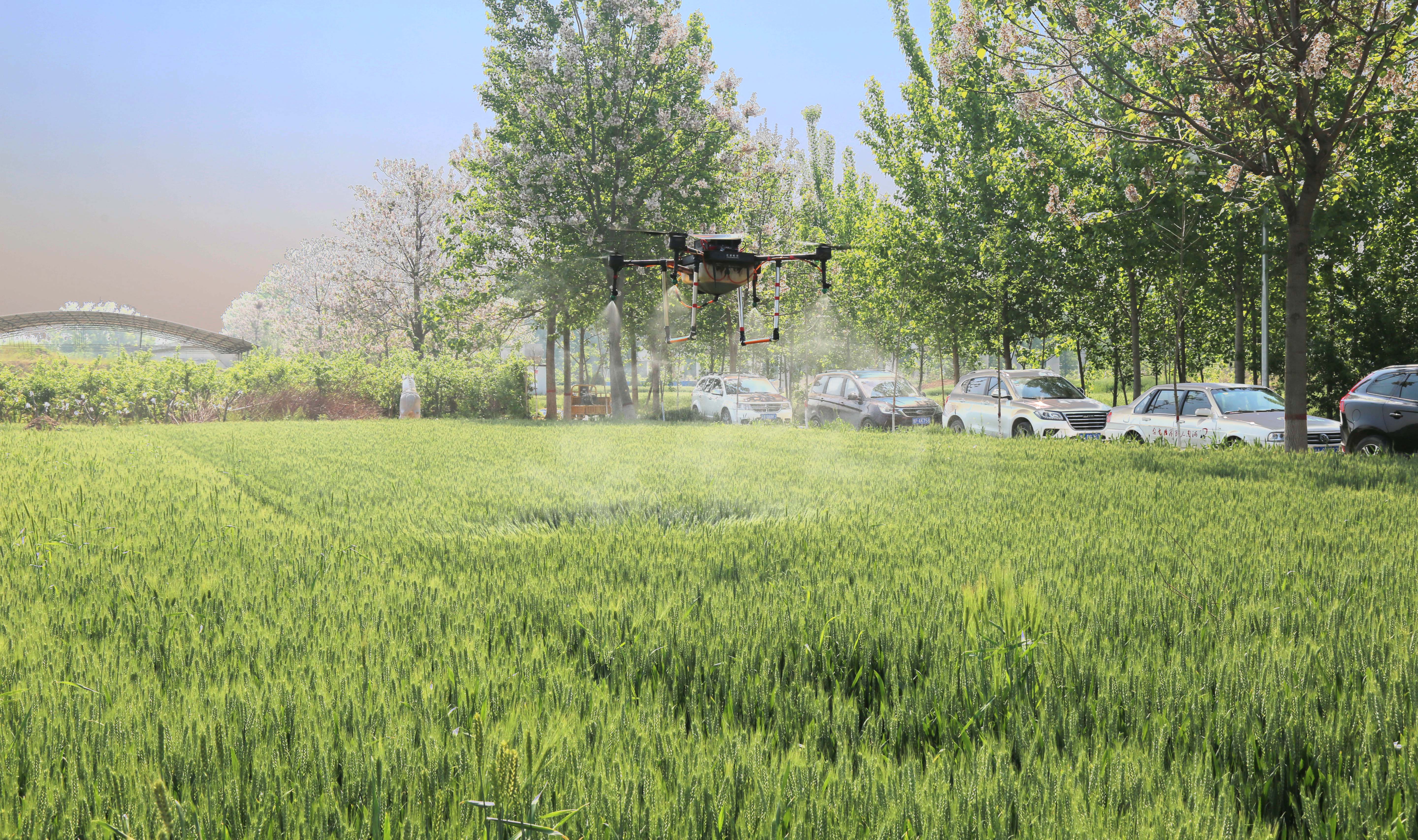随着机手打开遥控飞机的按钮,无人机从地面缓缓升起,清脆的发动机响声响彻整个麦田,通过机手的遥控随无人机开始喷洒农药。前来参观的群众们看到无人机精准的喷施,不到一会的工夫就打完了,大家纷纷伸出大拇指点赞。“之前我们背着药箱去打药,费工还费时。打完后身上总有一股农药味,这可好飞机喷洒农药三下五除二就解决了,还是科技是第一生产力”夏庄村的村民樊爱霞说。
