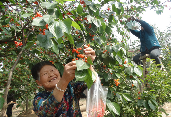 4月30日,沈丘县周营镇刘集村一处生态樱桃园,晶莹剔透红彤彤的甜樱桃,吸引不少游客前来采摘。近年来,随着乡村采摘游的兴起,沈丘县各乡镇大力发展草莓、葡萄、西瓜、苹果等经济水果种植,吸引广大市民自驾到田间地头亲手采摘,成为了村民致富增收的新路子。