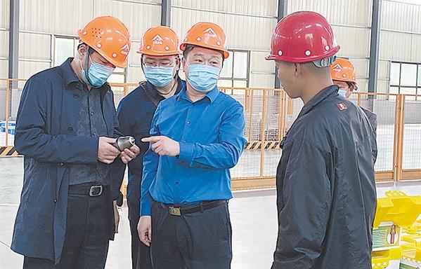 检察长顾涛在企业车间了解生产、销售情况,为复工复产提供优质检察服务