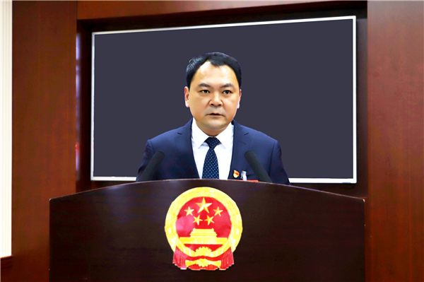 县人大常委会主任李建军向大会作县人大常委会工作报告。