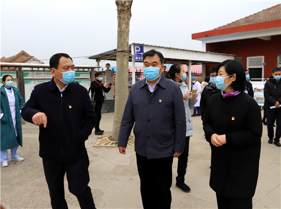 (2020年2月26日,市委书记刘继标在郸城县虎岗乡村卫生室听取罗文阁、李全林关于医共体建设工作汇报。)
