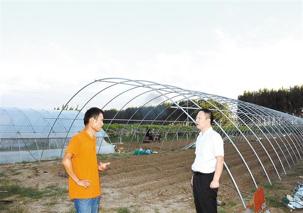郸城联社主任韩旭考察大学生创业种植合作社,提供资金支持,帮助大学生创业。薛冰川 摄
