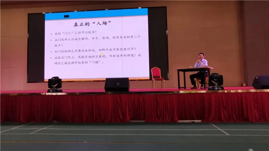 “真正的巨人有几项特征,会多种语言,懂一门艺术,长途旅行,文理通行”苑博士倡导多去认识自然界的东西,提出做80岁的年轻人,不做20岁的老人。他结合自己在石门坎的经历向我们展示了“未知的中国”的特质,开拓了老师们的视野。随后苑博士结合郑愁予的小诗《错误》为我们简单讲解了语文教学的设计规律,其中包含着学科规律、文本特点、学生心理。“线条是声音的符号,声音是心灵体验的符号,心灵体验是事物的符号”把文本变声音,是学习扫除障碍的最好方法。在苑博士的引导下,在场的老师们释放了“语文热情”。分别以快中慢的速度和少年,老年,青年的情感朗读了《错误》这首小诗。不同的节奏不同的感情的确带给了人不同的理解,这直接让我们拥有了不同的生命体验,也让我们明白了语文教学的确要“走心”,正像苑博士所说——语文要有灵魂。