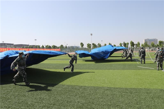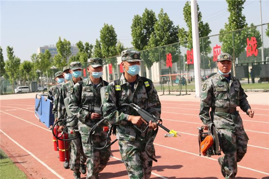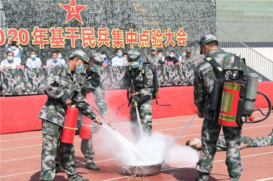 活动现场,八一军旗、民兵队旗迎风飘扬。上午9时许,全体起立,现场奏响雄浑的《中国人民解放军进行曲》。接着,政委郭立君宣读了民兵干部任职命令,应急班长带领全体民兵进行了宣誓,新入队民兵进行了表态发言。应急指挥所开设、队列表演、警棍盾牌操汇报、快速控火救人、战场急救……一个个精彩的汇报,赢得现场掌声阵阵。