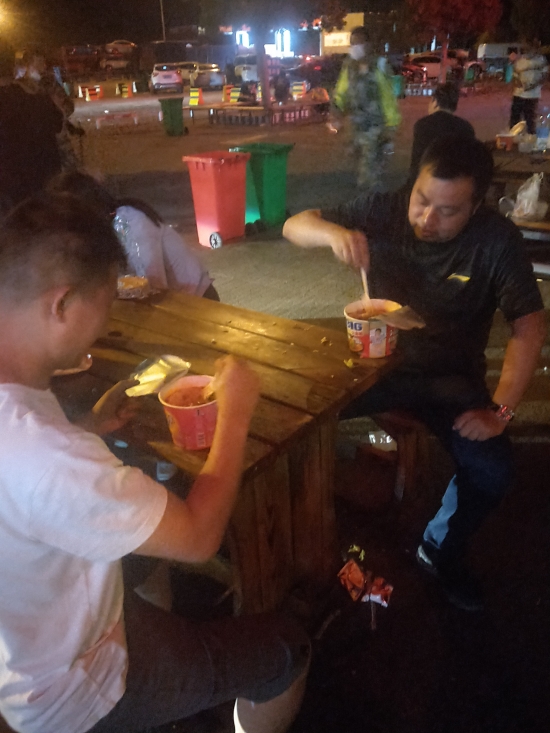 当晚,队员们带着嫌疑人归来,在服务区内,群里传来一张大家吃方便面的照片,靳伟成还发来一句:“带了这么多衣服,忙得都没有时间换一件。”